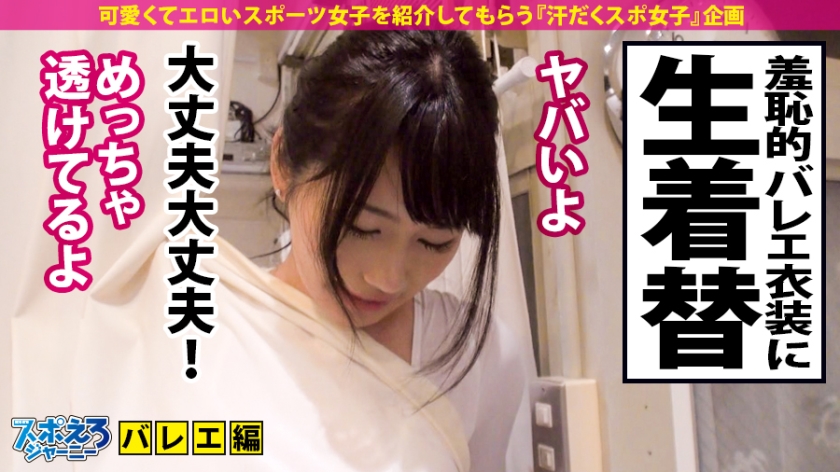 可愛くてエロいスポーツ女子を紹介してもらう『汗だくスポ女子』企画!①今回は表参道ヒルズで待ち合わせ!「ねね」ちゃんは元バレリーナ!15年ほど続けていたそうですがプロにはなれず…。辞めてから数年、今ではネイリストとして働いています。②近くのスタジオへ移動。バレエをやっていた頃の昔話を聞きつつ、いざ実践!ねねちゃんに教えてもらいつつ、バレリーナがよくやるクルクル回るアレをやってみます!が、まぁ上手くはいきませんわな(笑)普通にすっころんでしまいます。隣で笑いながらクルクル回ってるねねちゃん、さすがっす。③程なくしてお着替えタイム!こちらの用意したレオタードに着替えてもらうわけですが…極エロのモノを持ってきました!透けてるしハイレグ度がエグい!その状態で踊ってみるともうとにかくスケベ!乳も尻もぷるんと揺れて、オマ〇コの形もわかって…。高貴なスポーツを完全なエロ目線で見るという、バレエ経験者からしたら冒涜です。ねねちゃんのノリが良いおかげで怒られずに済みました…(笑)④ホテルへと移動したら先ほどの汗は流さずにそのままSEX!スポーツモノ企画の醍醐味ですね!Fカップの豊満な胸を堪能しつつ、電マとバイブと手マンで大量連続潮吹き!からの、だらしないオマ〇コに巨根挿入!肉付きのいい体が弾けてエロい!着衣SEXの末にセクシーランジェリーにぶっかけ!⑤お風呂でイチャついていたらお互いに物足りなくなり2回戦!立ちバックで片足を持ち上げると、バレリーナよろしく足先までピンっと!バックからの責めに弱いみたいで中イキを繰り返します!その後も69やオイルを垂らしたヌルヌルプレイを楽しみ顔射!それでも収まらず最後の一発は中出し!汗と潮とオイルと精液でもうぐちょぐちょ!⑥恒例のお友達紹介!学生時代に仲の良かったスポーツ女子と繋げてくれるみたいです!次回も期待で胸とチ〇ポが膨らむばかり!